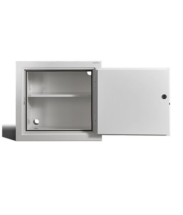 Skåpen kan utrustas med flyttbara hyllor, utdragbara hyllor med uppvikta kanter och lås inkl. 2 nycklar.