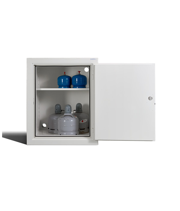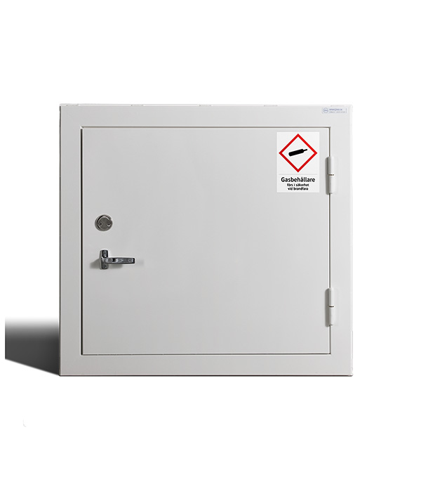 EI30-Gas/Gasolskåpet är utrustat med ventilationsöppningar i ryggen. Skåpet placeras mot yttervägg så att ventilation kan ske genom yttervägg utan mekanisk ventilation.