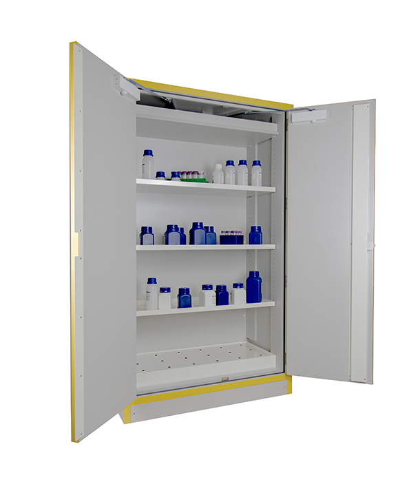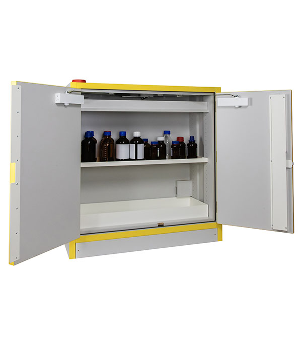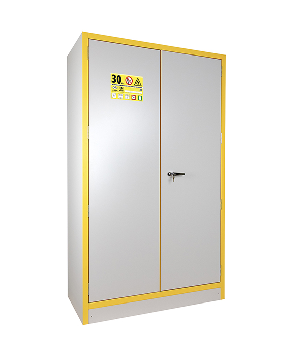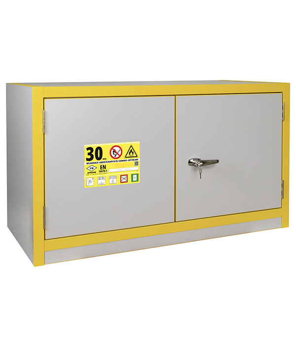 Godkänt enligt FM-standard 6050- Ø100 mm ventilationsöppningar.- Självstängande dörrar som kan ställas uppoch stängs automatiskt vid temperaturstegringpå 50°C.- Dörrar med trepunktslåsning och cylinderlås.